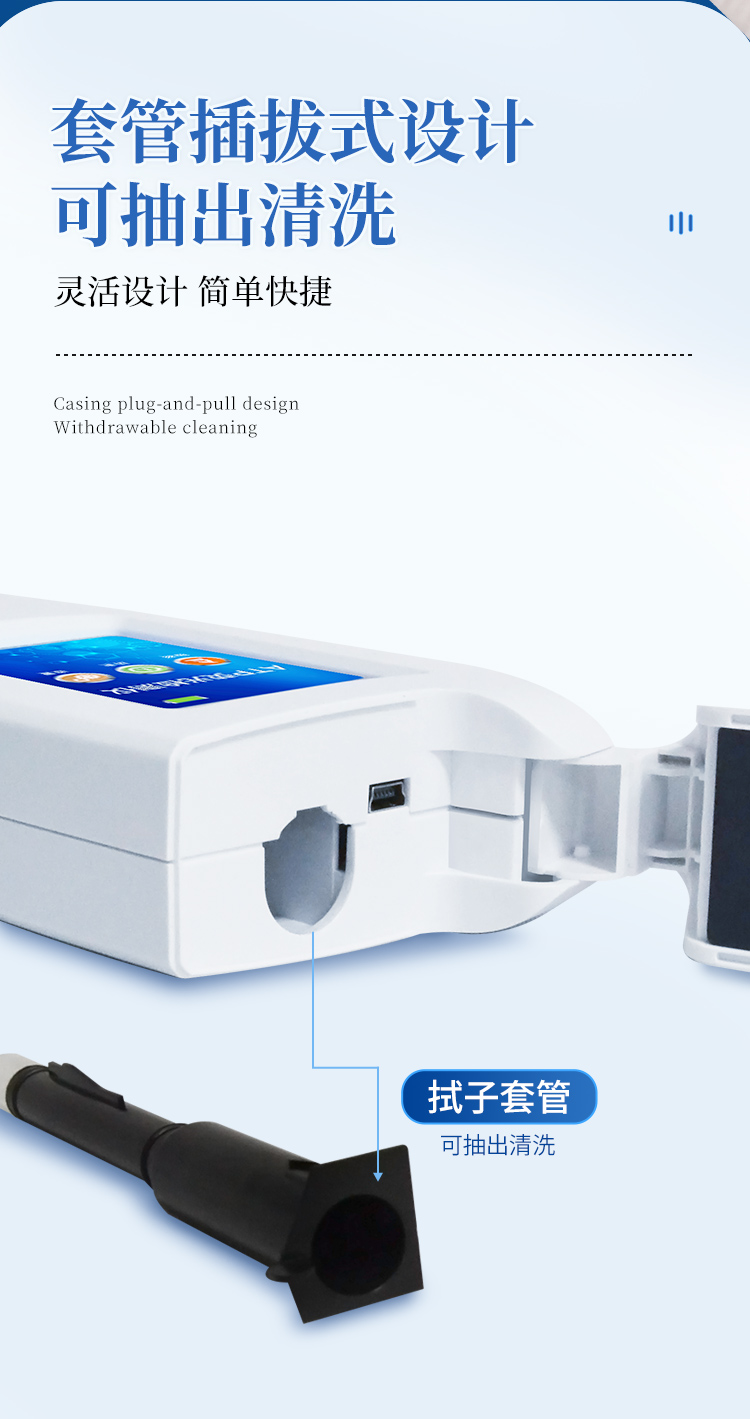 體驗(yàn)更好 —— 試子套管采用插拔式靈活設(shè)計(jì),可定期清洗長(zhǎng)期使用,延長(zhǎng)儀器壽命。