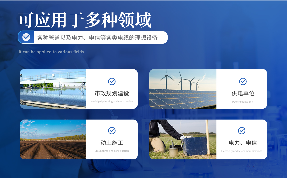 云唐YT-DGDA型全頻管線探測儀是專業(yè)管線探測、管線管理與維護(hù)、市政規(guī)劃建設(shè)、供電單位、動土施工等設(shè)計(jì)地下管線的單位探測輸油(氣)管道、給水、排水、燃?xì)?、熱力、工業(yè)等各種管道以及電力、電信等各類電纜的理想設(shè)備,是管線儀更新?lián)Q代的**選擇。