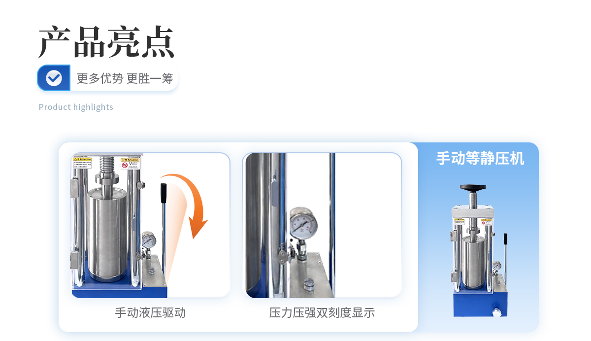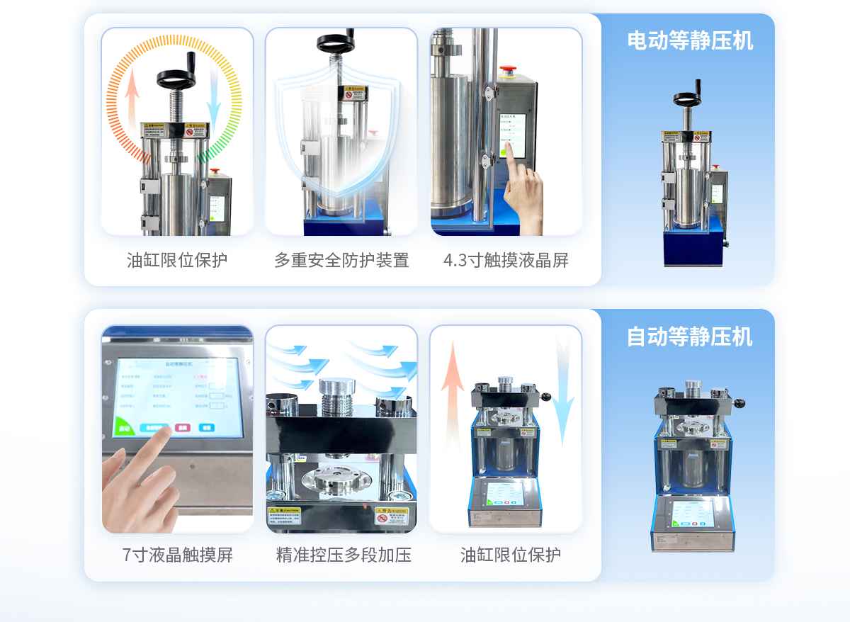 該機(jī)采用電動(dòng)液壓驅(qū)動(dòng),分體式結(jié)構(gòu),智能化的程序控制系統(tǒng),安全可靠的防護(hù)裝置,制樣完畢可輕松拖動(dòng)等靜壓腔體至取樣平臺,其操作簡便,取樣方便,適合需要大噸位、大物件樣品的等靜壓實(shí)驗(yàn)。