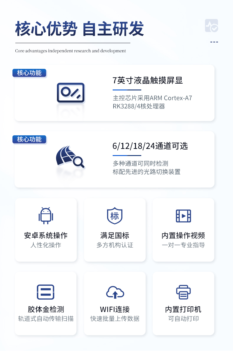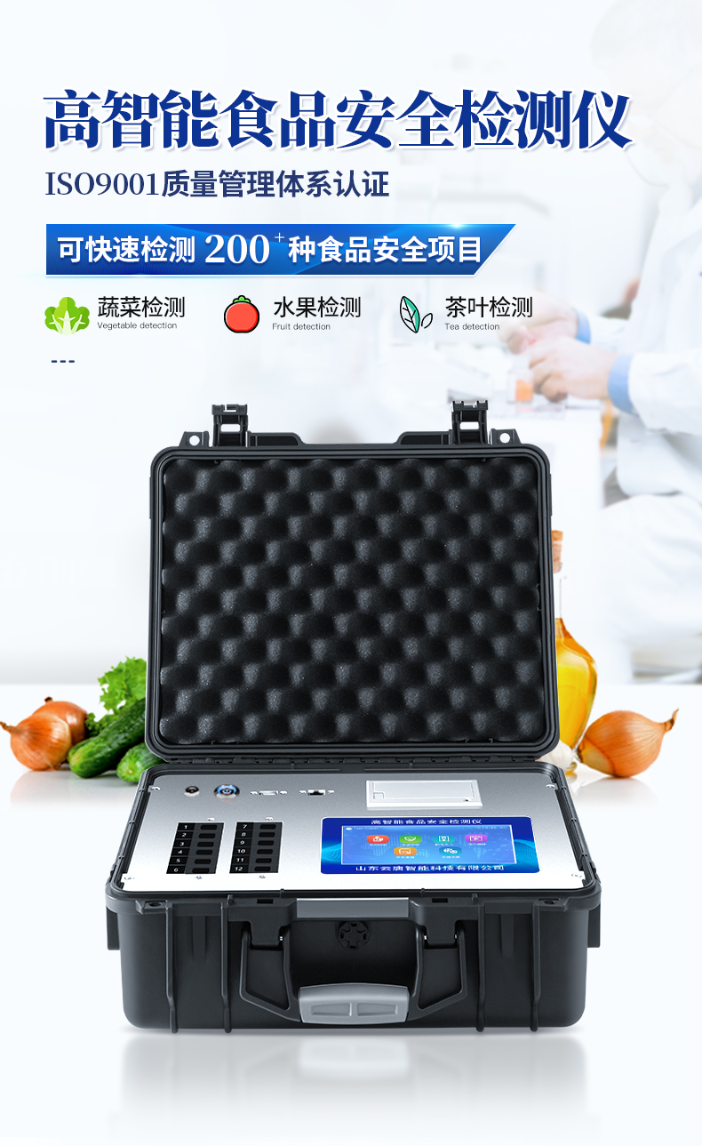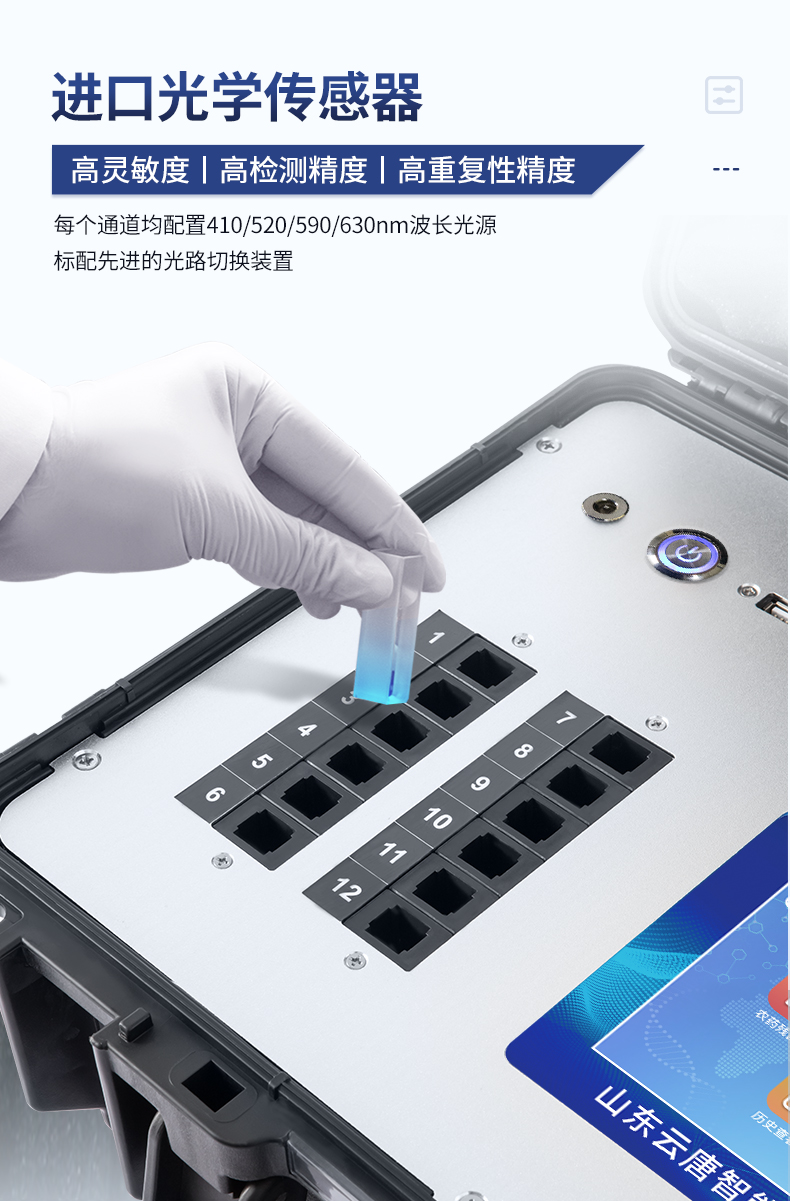 | 該儀器通過光電子技術(shù)對反應(yīng)生成物的反射率進行分析測試,定量或定性分析樣品中待測物的含量。 | 安卓智能操作系統(tǒng),7英寸高靈敏真彩觸摸屏,更加**和人性化操作, | 儀器具有4G無線聯(lián)網(wǎng)、wifi聯(lián)網(wǎng)上傳、GPRS無線遠傳功能,快速上傳數(shù)據(jù)。 | 便攜式儀器,便于現(xiàn)場攜帶操作,主機重量不大于3kg。 | 具有可見光光源,可檢測可見光信號,檢測值0~30000。 | 具有常用打印機數(shù)據(jù)線接口,直接打印結(jié)果;配備USB接口,可連接網(wǎng)絡(luò)。 | 具有多個食品安全檢測項目,開放平臺,可以增減檢測項目。 | 檢測通道:12個檢測通道,可以同時測試多個樣品,每個樣品由程序控制分別獨立工作,不會互相干擾。 | 以模擬反射率的標(biāo)準(zhǔn)片為50%附近時為代表,精密度CV值≤0.8%。 | 供電電源:(220±22V)~50Hz±1Hz,供電電源電壓波動不應(yīng)超過220V AC±10%。 | 內(nèi)置打印機,實時打印檢測結(jié)果。內(nèi)置大容量電池,便于現(xiàn)場執(zhí)法檢測。 | 高靈敏度,高檢測精度,高重復(fù)性精度,掃描式高精度光學(xué)傳感器。 | 機身儲存上萬條檢測結(jié)果,也可以導(dǎo)出儲存。 | 開放端口,可連接監(jiān)管平臺數(shù)據(jù)庫,界面有上傳操作。 |