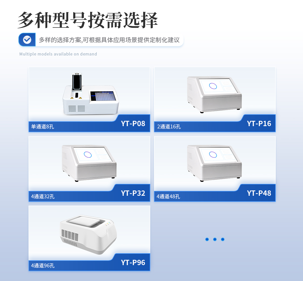YT-P08型號 實時熒光定量PCR儀器的原理:聚合酶鏈式反應(polymerase chain reaction,PCR)是一種用于放大擴增特定的DNA片段的分子生物學技術,它可看作是生物體外的特殊DNA擴增,由高溫變性、低溫退火及適溫延伸等幾步反應組成一個溫度循環(huán)周期,使目的基因得以迅速擴增,具有特異性強、靈敏度高、操作簡便、省時等特點,是基因擴增技術的一次重大革新。PCR技術可將極微量的目標DNA特異地擴增上百萬倍,從而大大提高對DNA分子的分析和檢測能力。