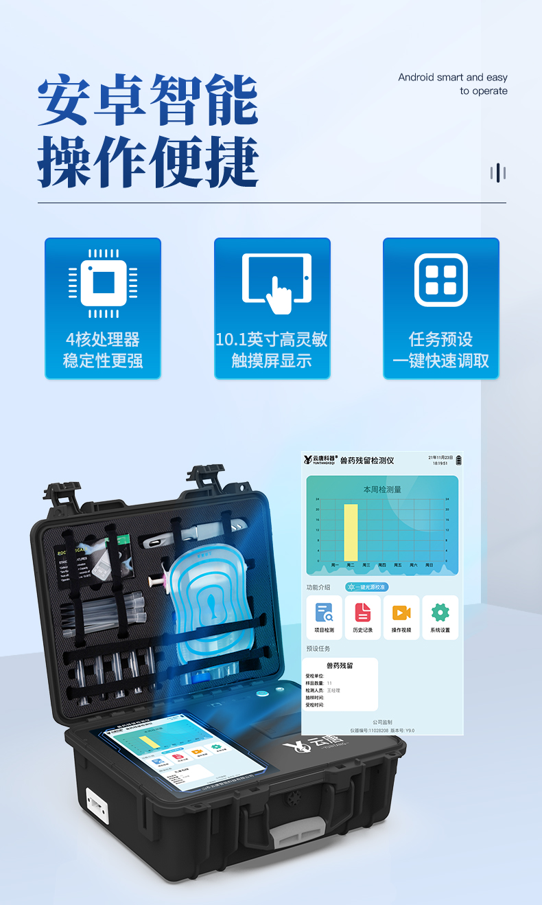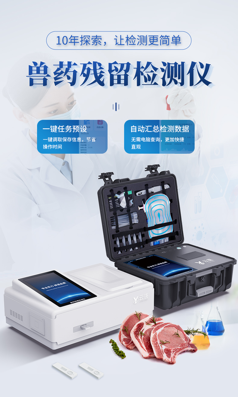 山東云唐智能科技有限公司生產(chǎn)的高智能獸藥殘留檢測(cè)儀可快速檢測(cè)瘦肉精激素類食品安全項(xiàng)目,包含鹽酸克倫特羅、沙丁胺醇、萊克多巴胺、己烯雌酚,獸藥殘留、抗生素類殘留、真菌毒素類殘留、動(dòng)物疫病類等檢測(cè)