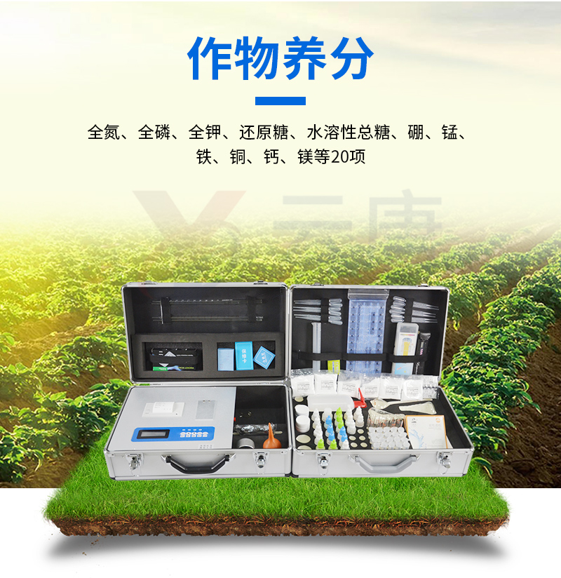 配套齊全:該儀器集藥、器、儀為一體,攜帶方便,相當(dāng)于一個小型實驗室。適于農(nóng)業(yè)服務(wù)部門或農(nóng)資經(jīng)銷商、肥料廠商測土施肥和鑒別肥料真假。