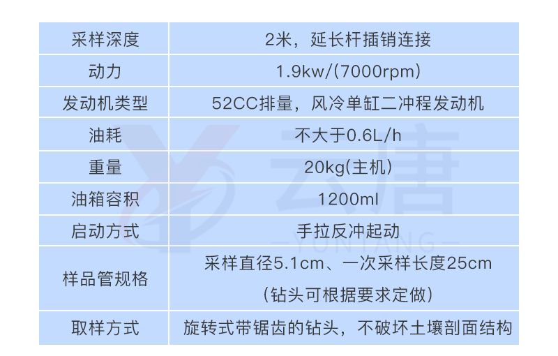 規(guī) 格: 采樣直徑5.1cm、一次采樣長度25cm(鉆頭可根據(jù)要求定做)