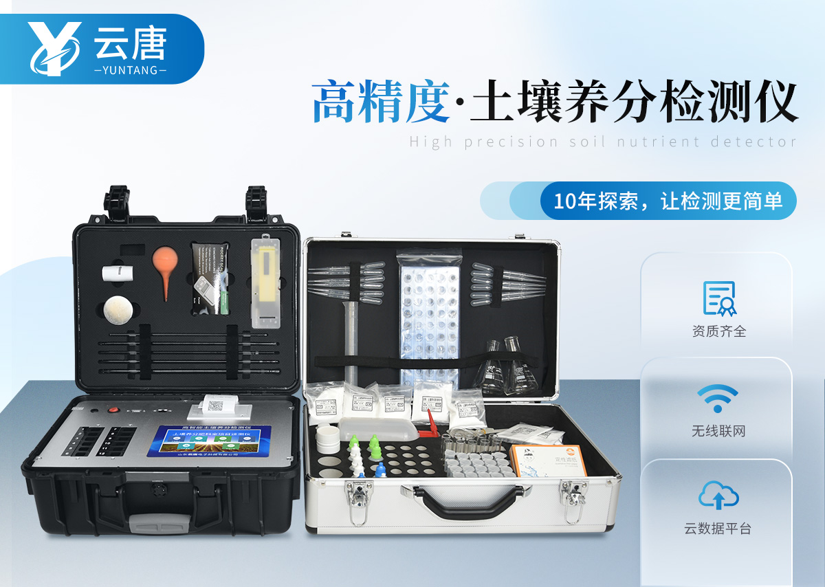 配套齊全:該儀器集藥、器、儀為一體,攜帶方便,相當(dāng)于一個(gè)小型移動(dòng)實(shí)驗(yàn)室,無(wú)需用戶自配附件,亦可靈活野外流動(dòng)測(cè)試。適于農(nóng)業(yè)服務(wù)部門或農(nóng)資經(jīng)銷商、合作社、肥料廠商、大種植戶測(cè)土施肥和鑒別肥料真假。
